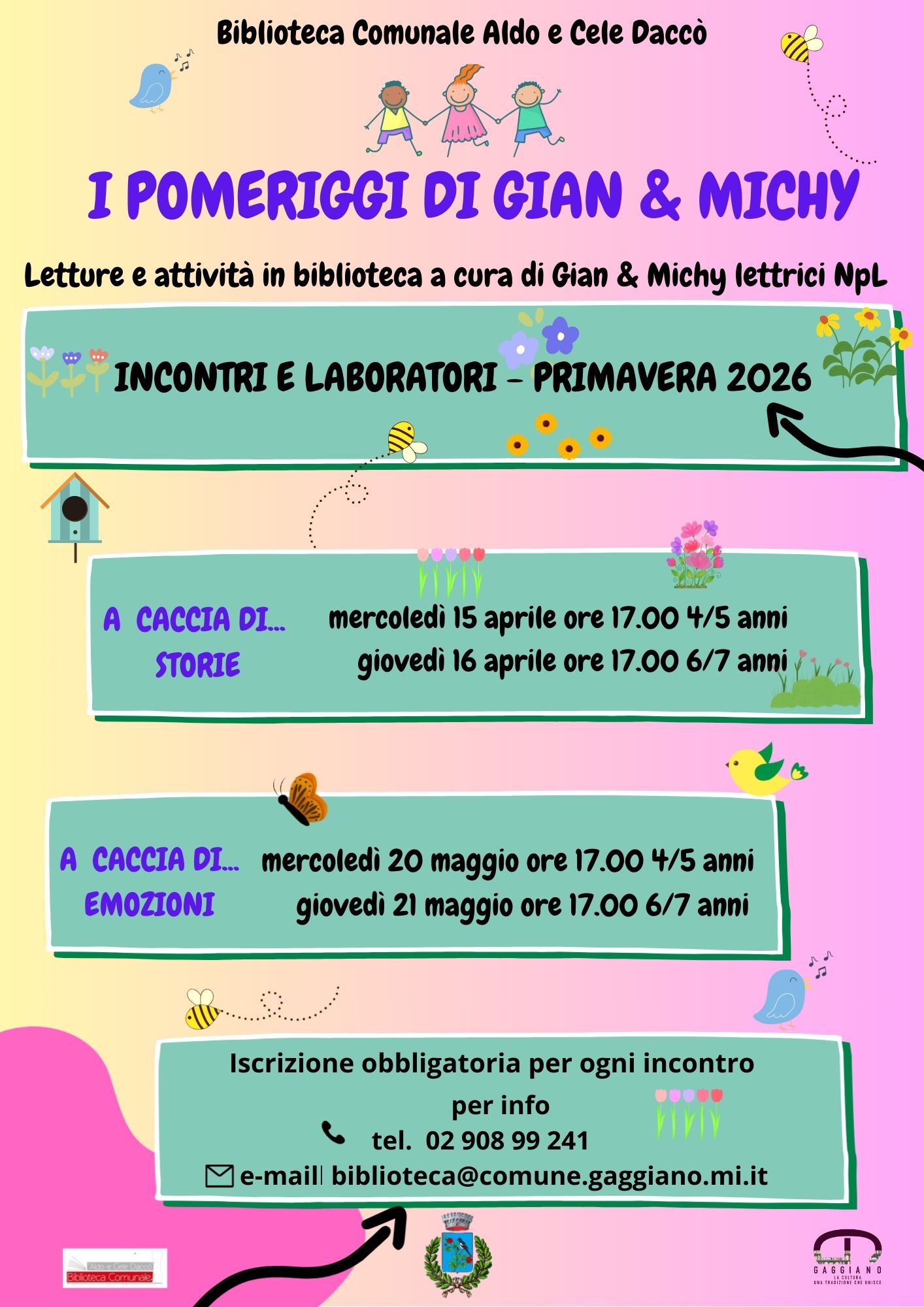 ricominciano gli incontri con le nostre insuperabili Gian & Michy, gli appuntamenti raddoppiano e saranno dedicati, nella stessa settimana, sia ai più piccoli che a quelli più grandicelli.
